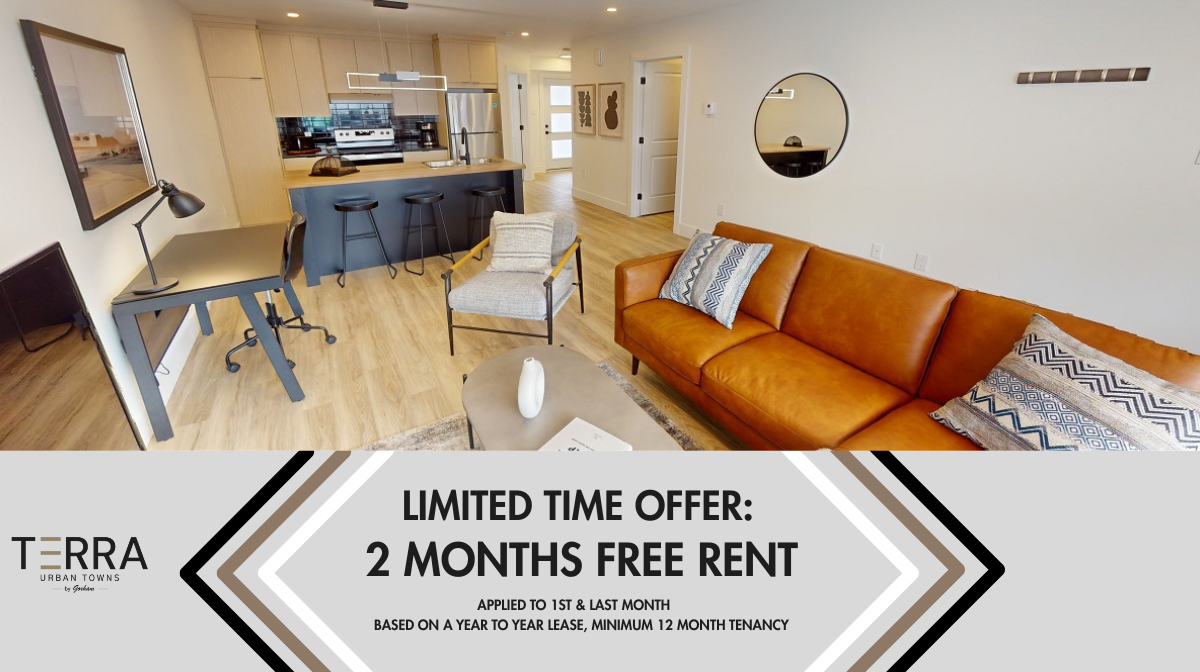 LIMITED TIME OFFER: 2 MONTHS FREE RENT (applied to first and last month rent. Based on a year to year lease, minimum 12 months tenancy)
