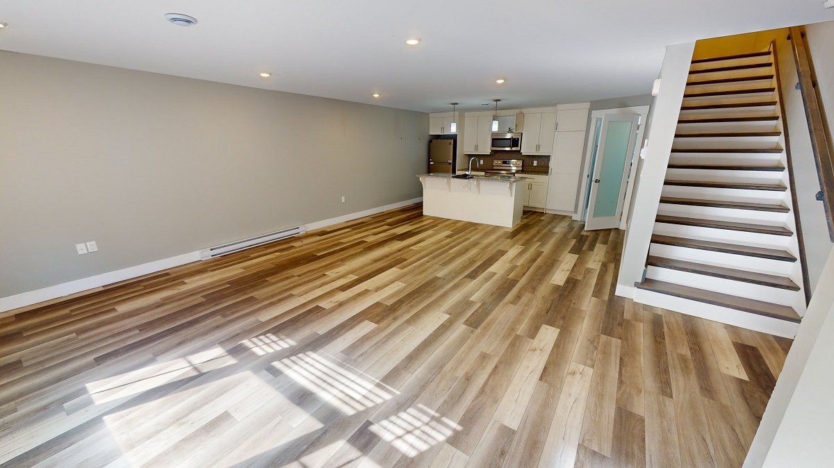 -Open concept kitchen and living area