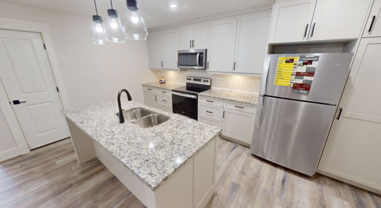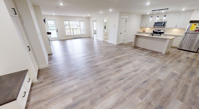 -Open concept kitchen and living area